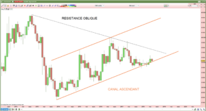 Le graphe en données mensuelles montre que le rebond sur le bas du canal de long terme est à l’œuvre.