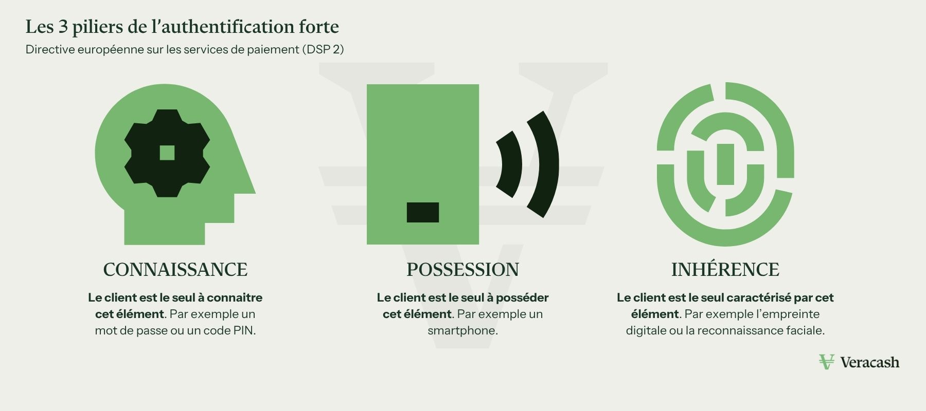 L’authentification forte (ou SCA pour strong customer authentication) repose sur un principe simple : au lieu d’un seul code ou mot de passe, l’accès à votre compte ou la validation d’un paiement repose sur au moins deux facteurs distincts.