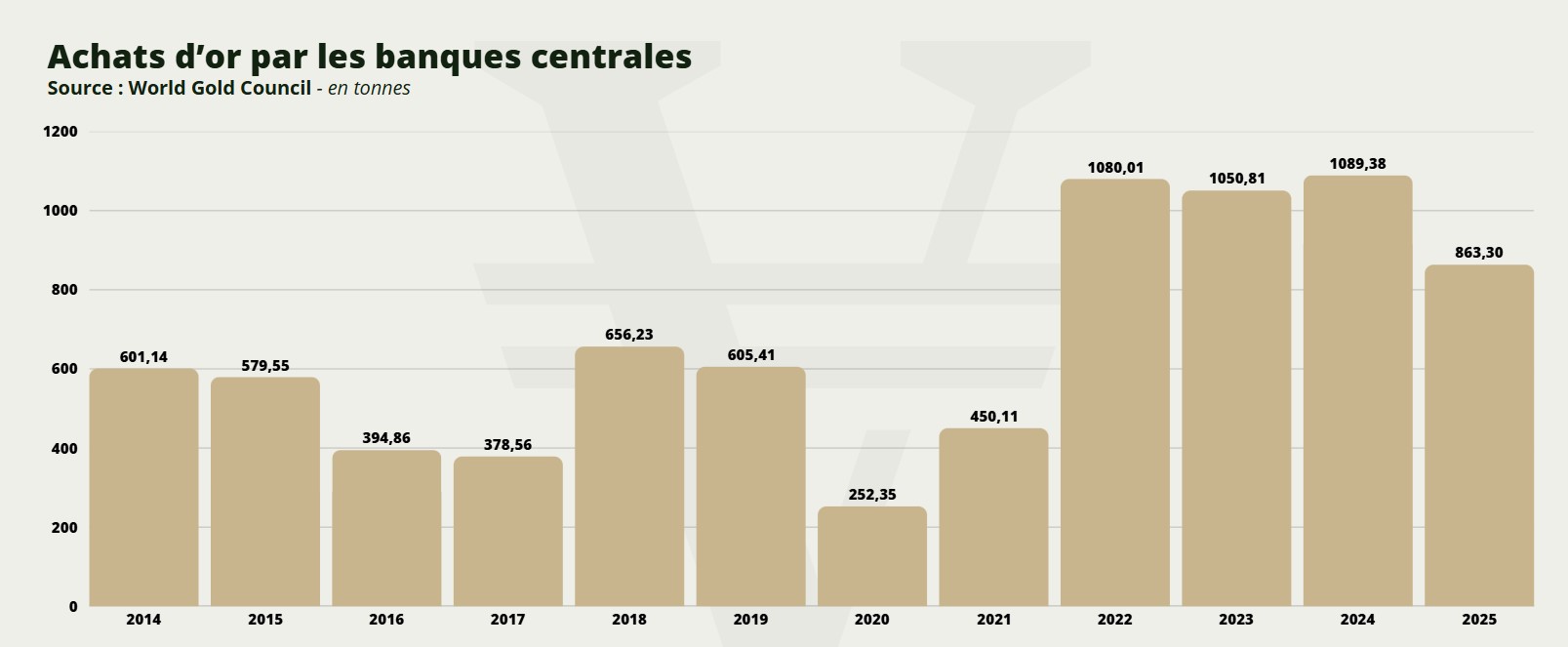 Les fondamentaux restent solides : retraits physiques élevés en Chine et achats massifs des banques centrales (plus de 860 tonnes en 2025).