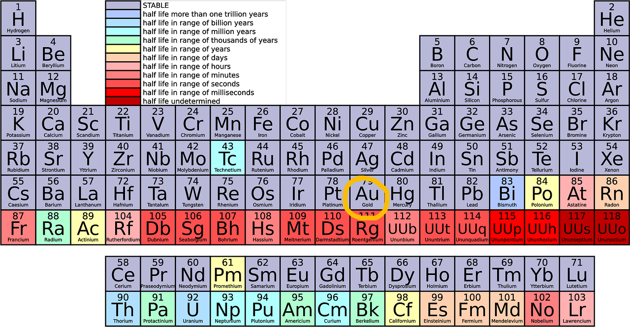 Son numéro atomique 79 le place parmi les éléments lourds du tableau. Sa configuration électronique [Xe] 4f¹⁴ 5d¹⁰ 6s¹ révèle un électron célibataire sur sa couche externe, particularité qui détermine ses remarquables propriétés chimiques.