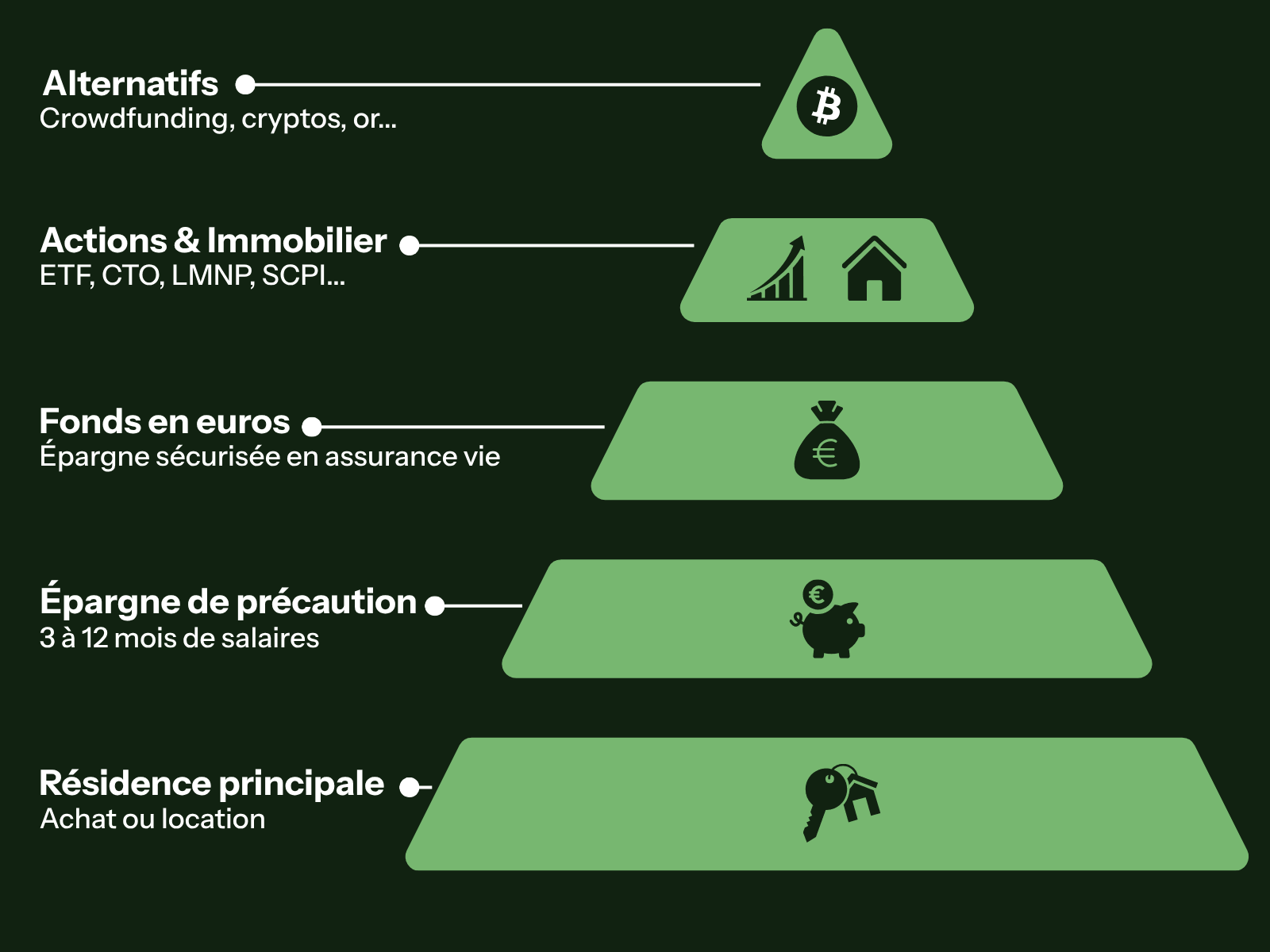 - Des placements moins traditionnels (private equity, cryptoactifs).